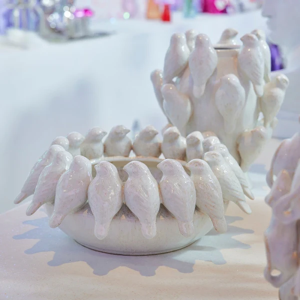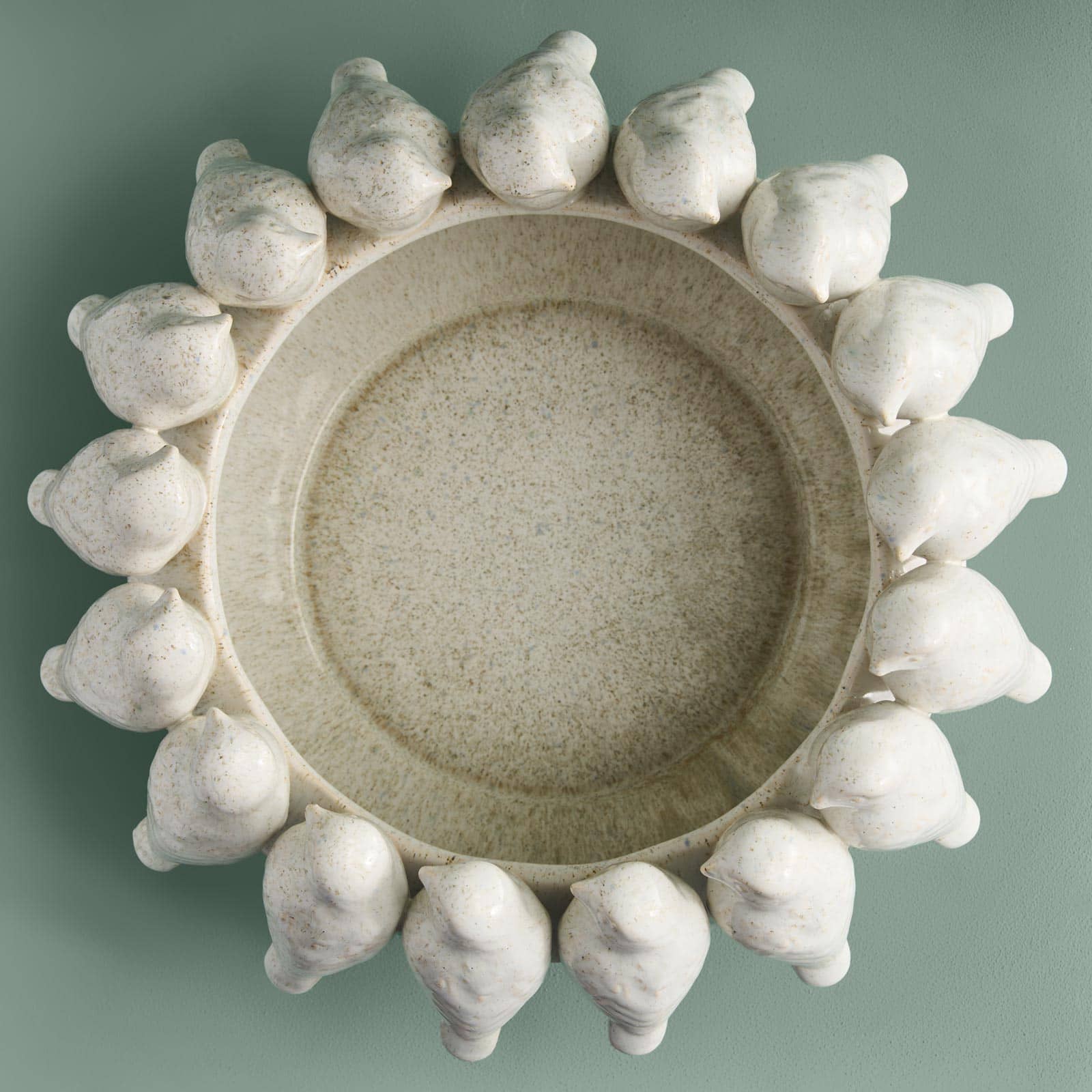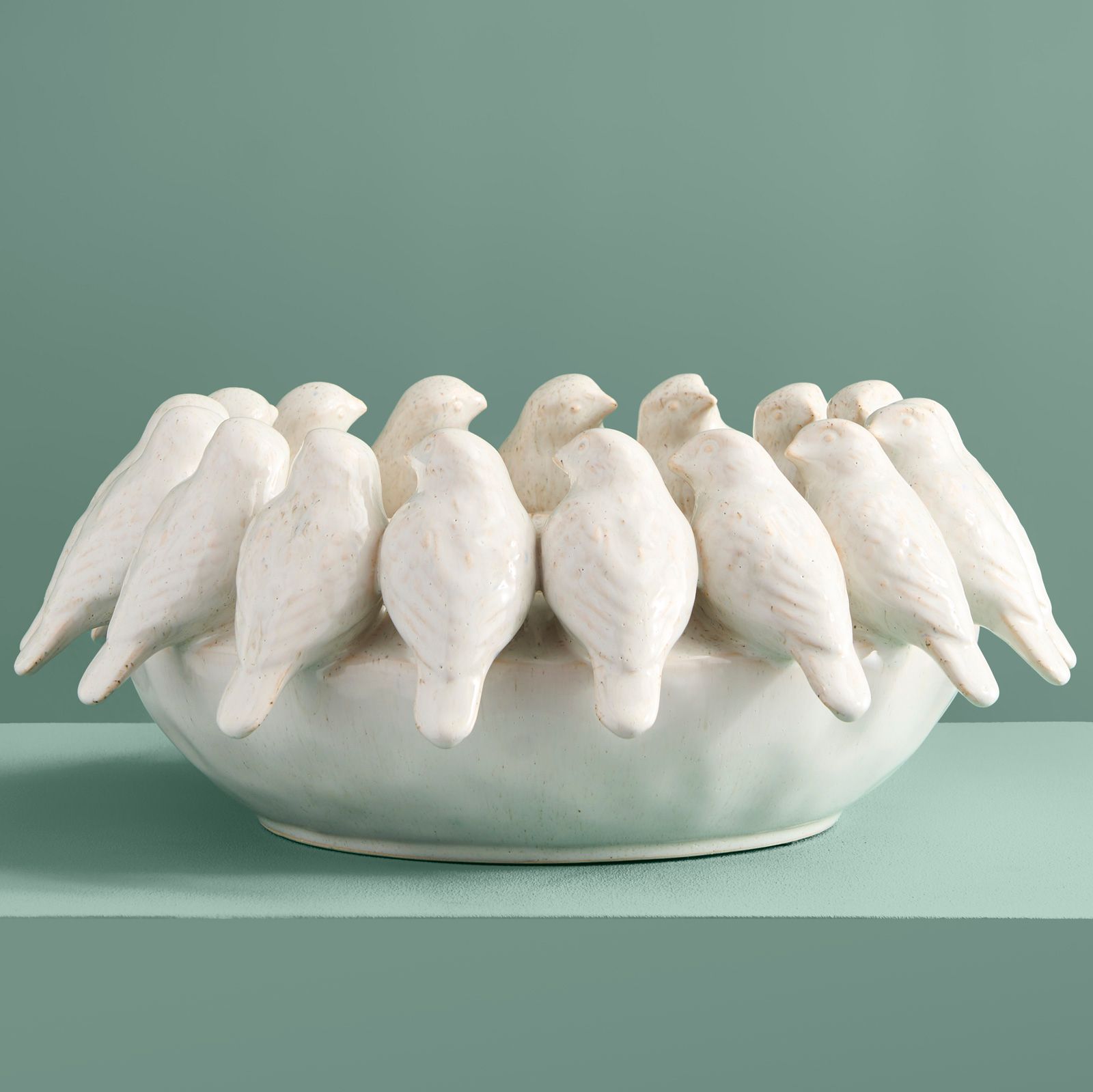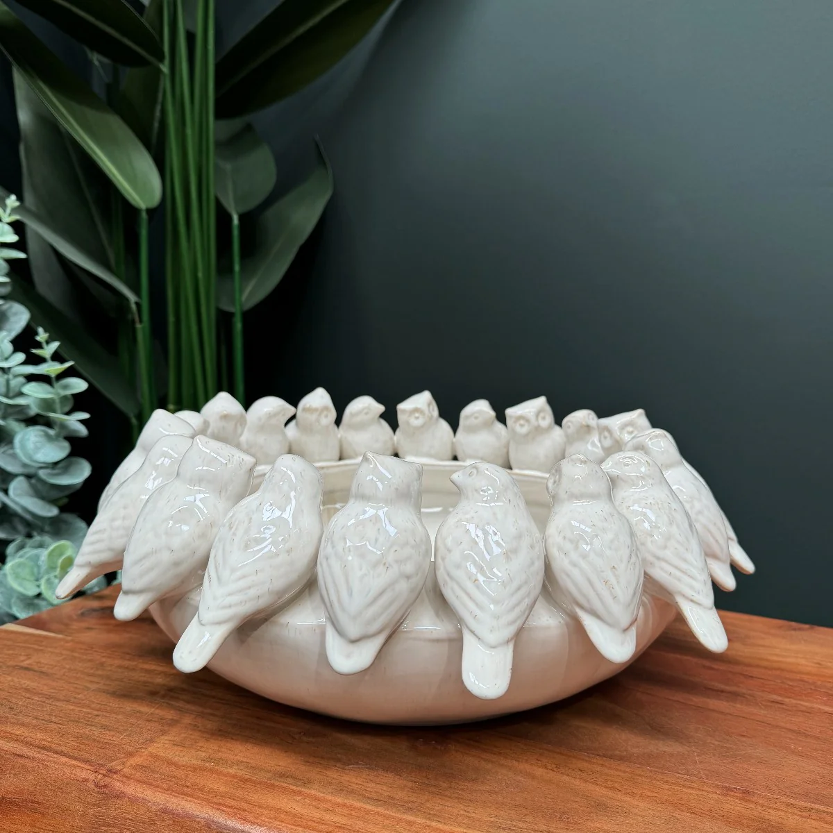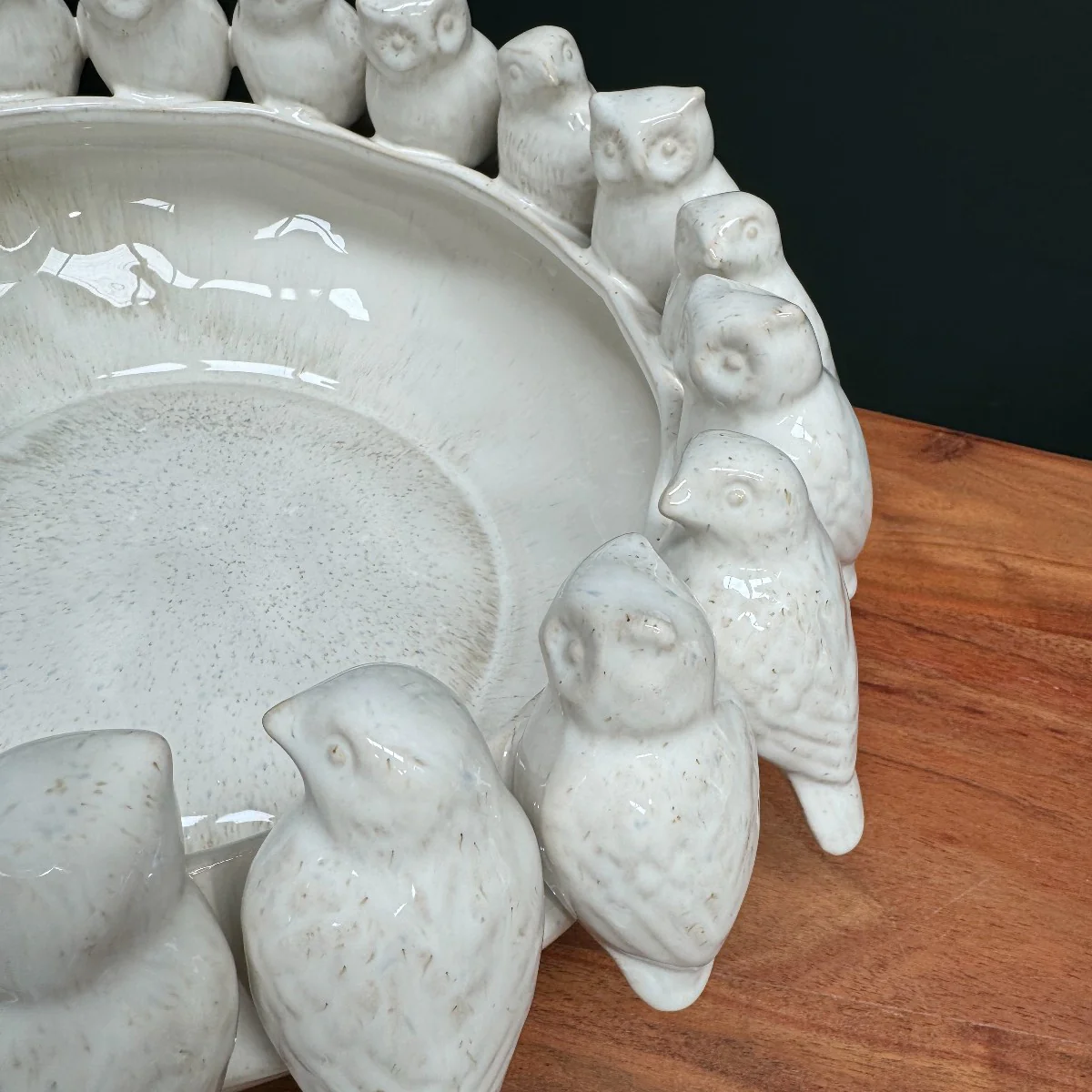 Ótrúlega falleg hvít keramik skál með fuglum á.