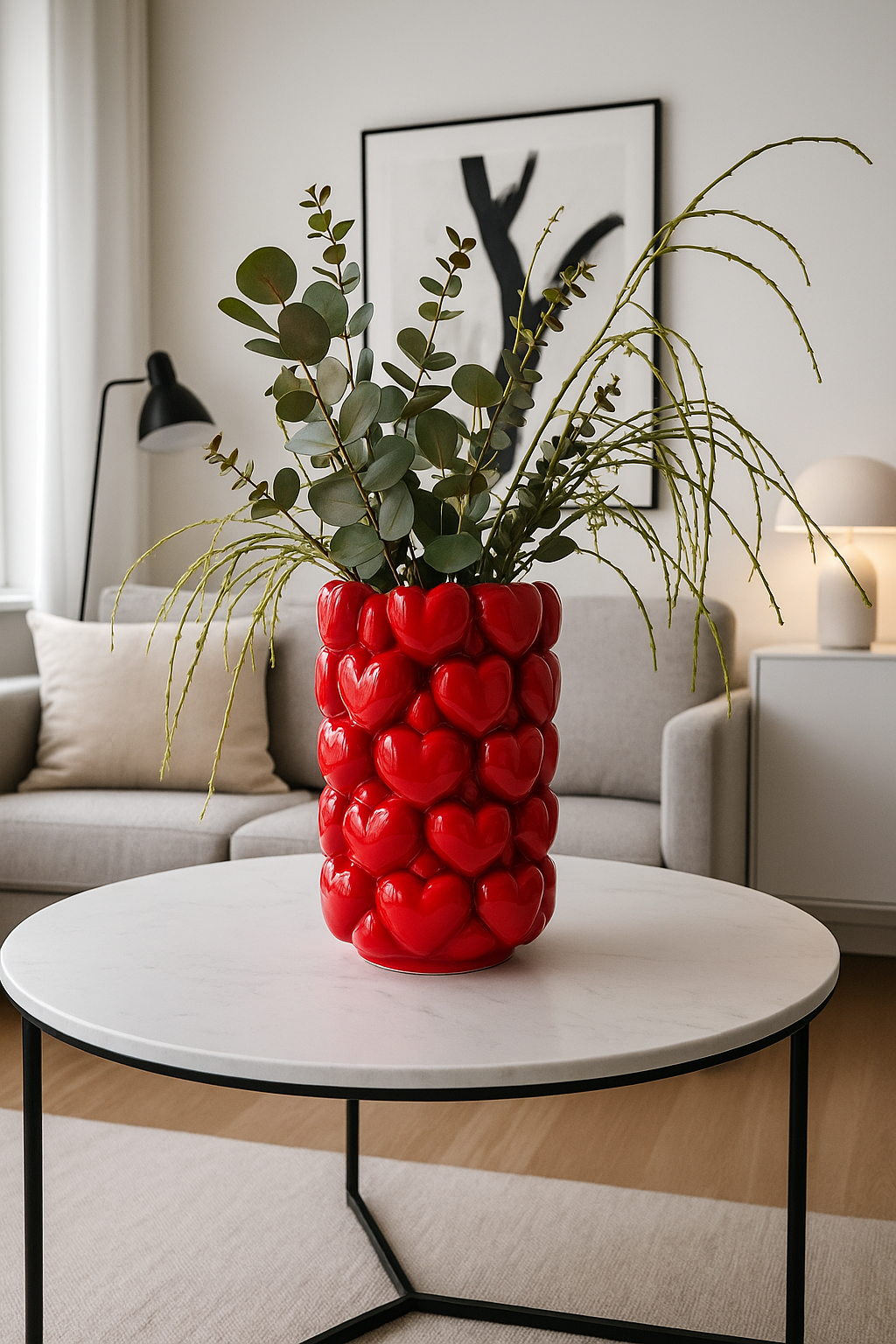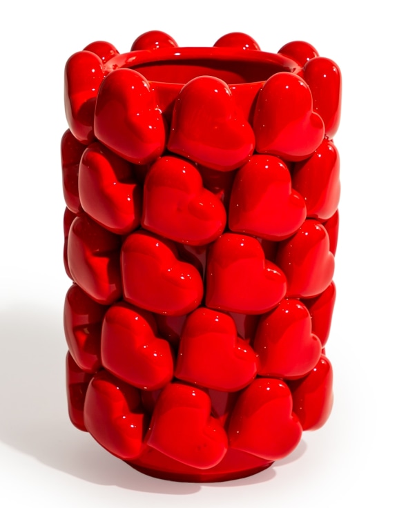 Ótrúlega flottur og veglegur eldrauður hjartavasi úr keramik