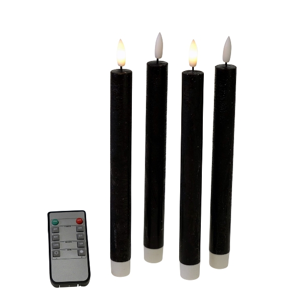 Svört LED kerti m/ Fjarstýringu – 4 saman í pakka